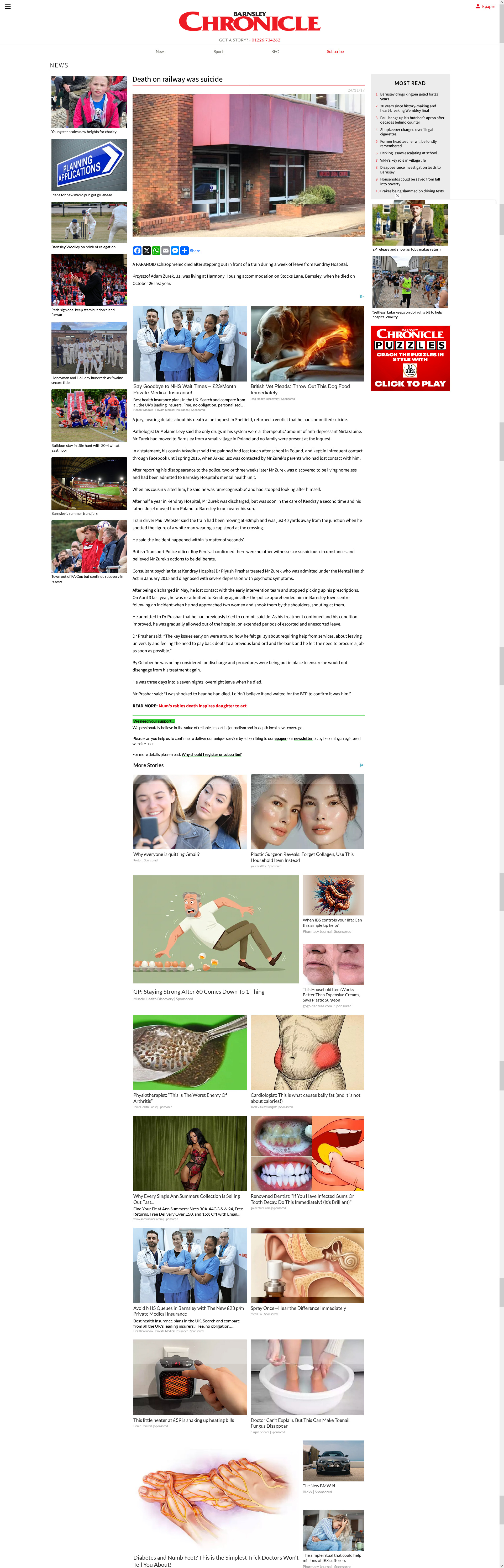 After reporting his disappearance to the police, two or three weeks later Mr Zurek was discovered to be living homeless and had been admitted to Barnsley Hospital’s mental health unit.